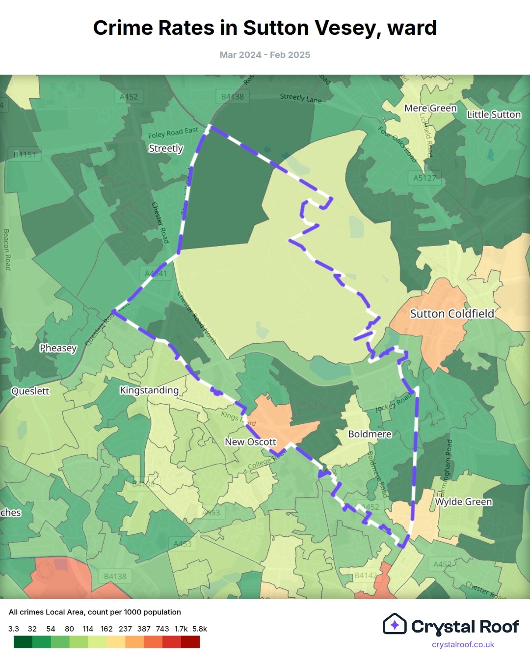 Sutton Vesey, (ward) includes areas with the following crime ratings (see map):