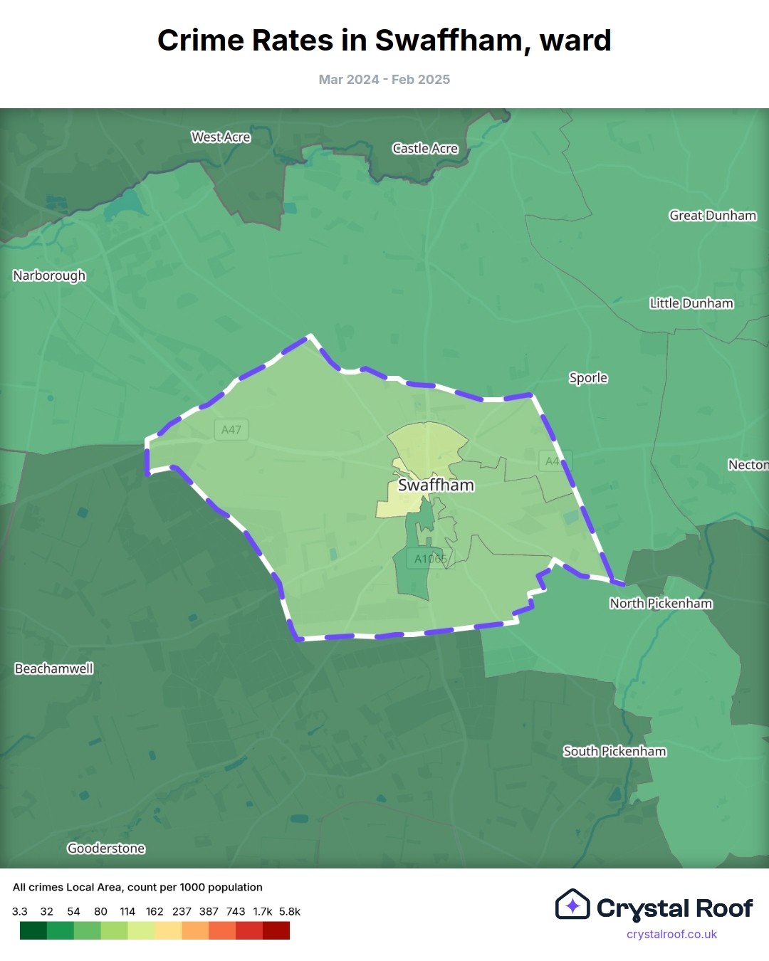 Swaffham, (ward) includes areas with the following crime ratings (see map):