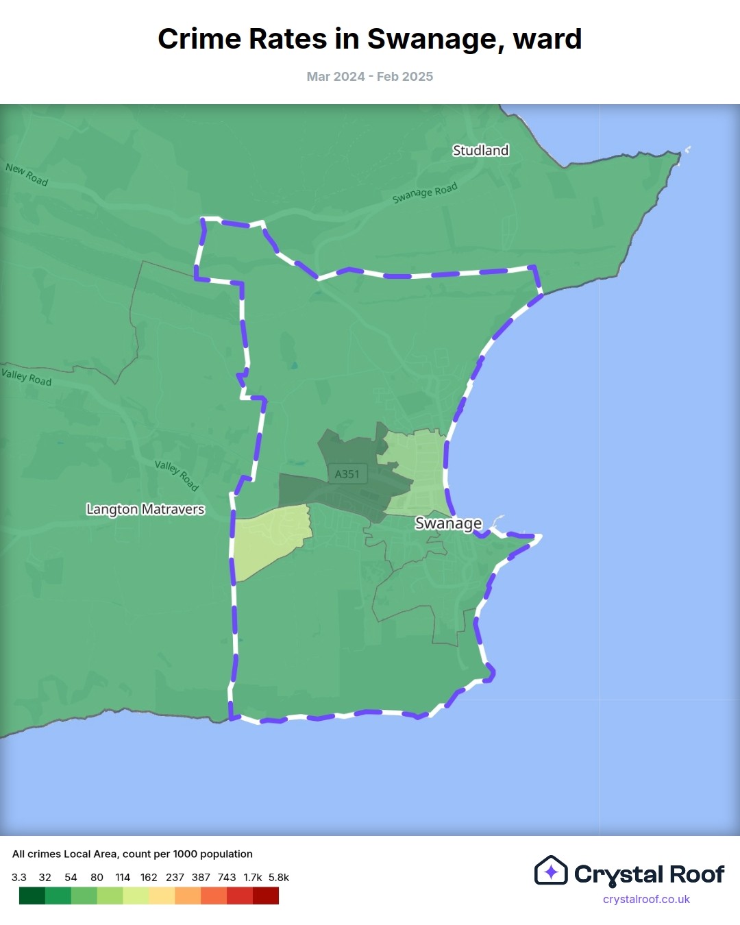 Swanage, (ward) includes areas with the following crime ratings (see map):