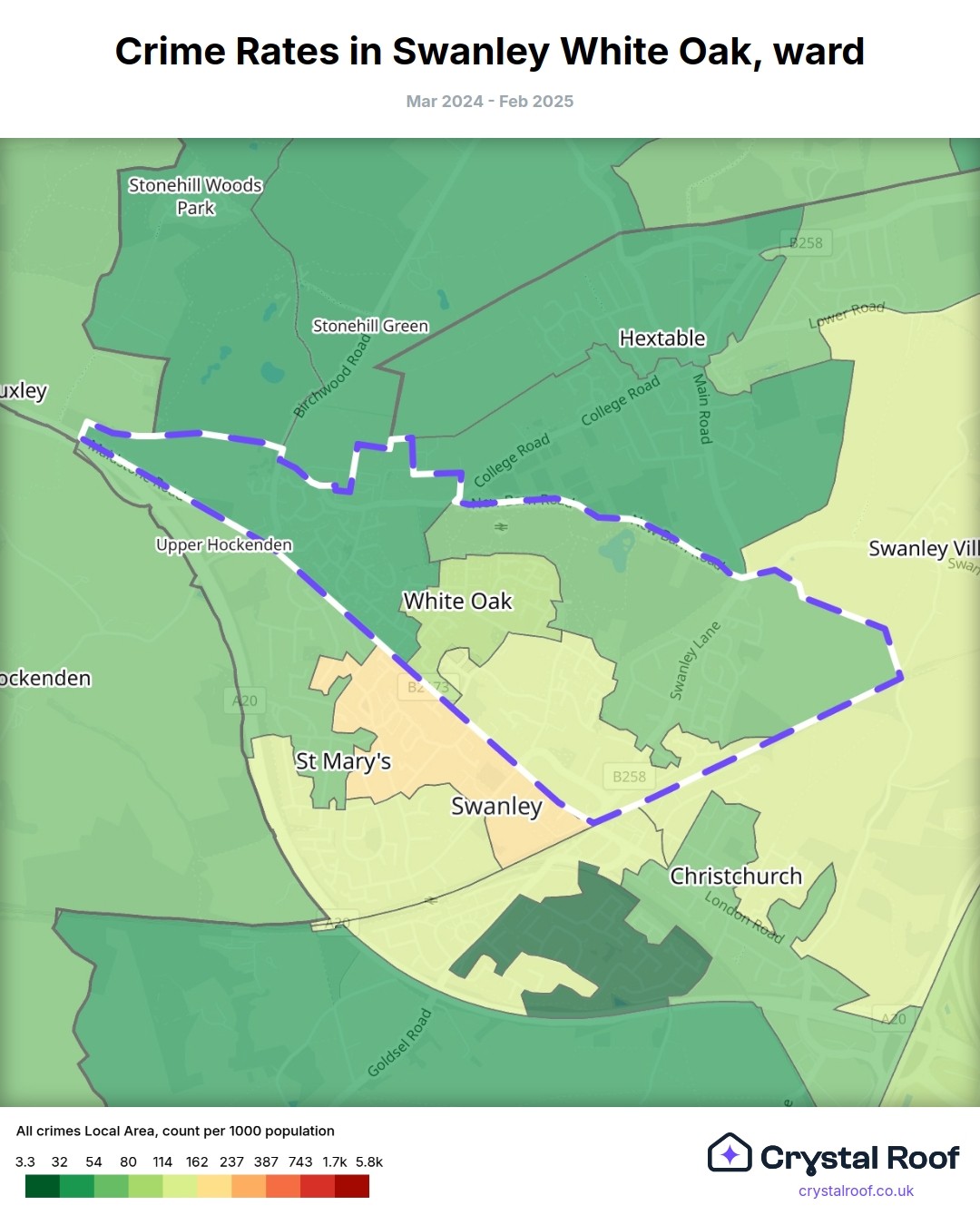 Swanley White Oak, (ward) includes areas with the following crime ratings (see map):
