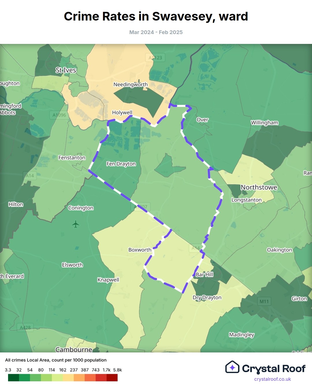 Swavesey, (ward) includes areas with the following crime ratings (see map):