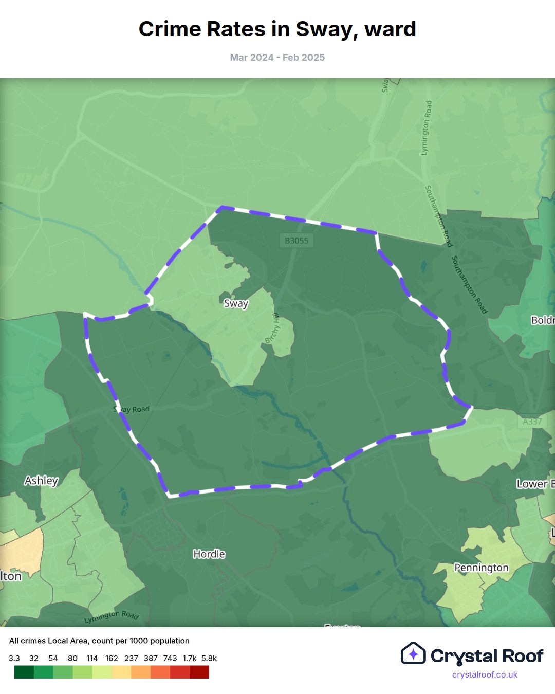 Sway, (ward) includes areas with the following crime ratings (see map):