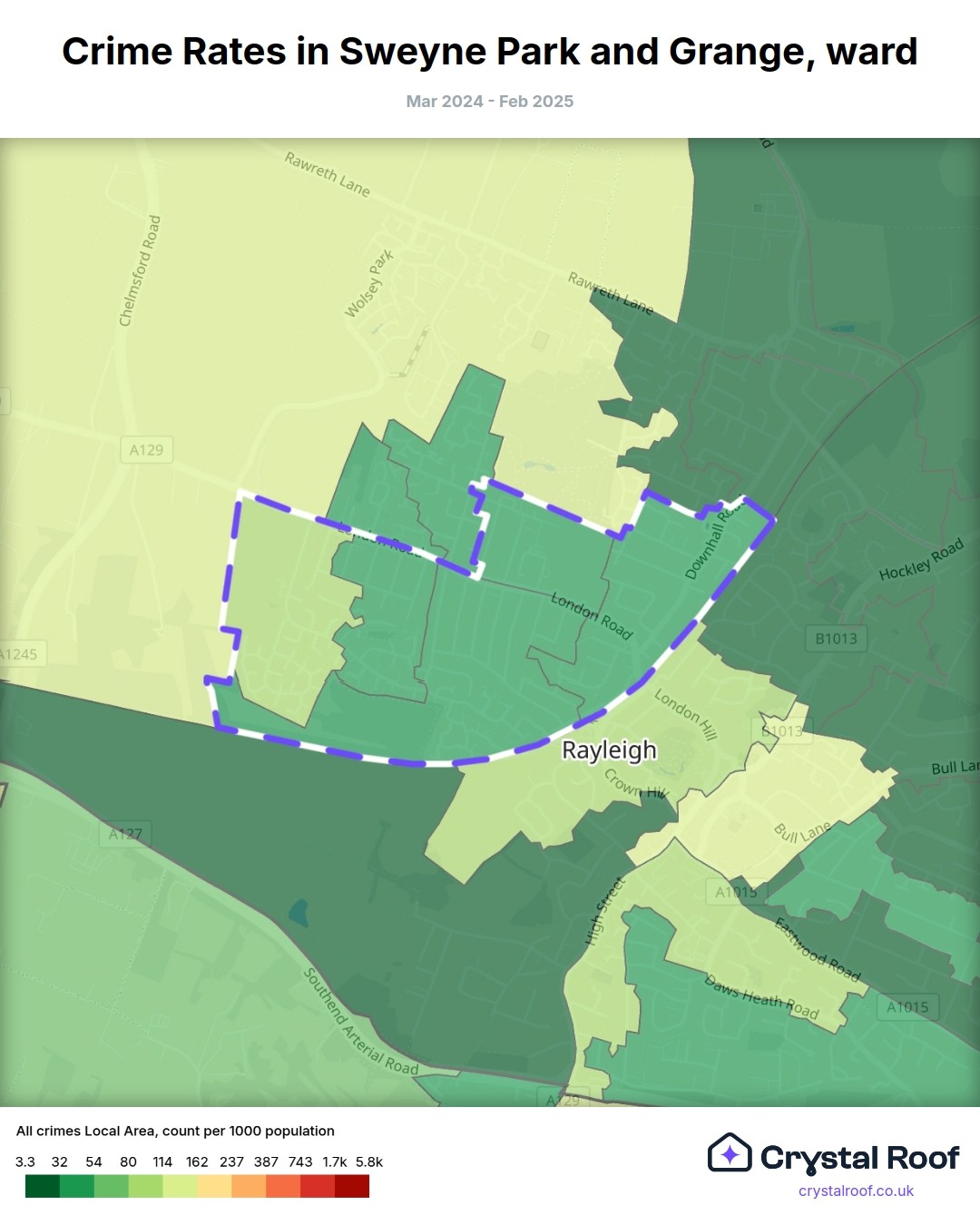 Sweyne Park and Grange, (ward) includes areas with the following crime ratings (see map):