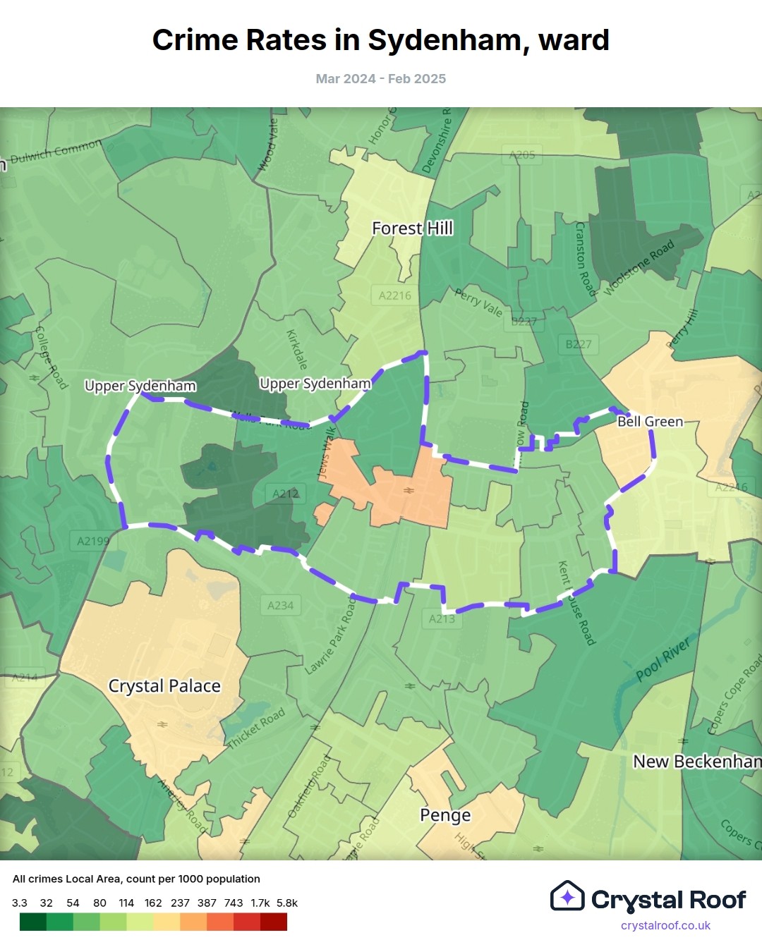 Sydenham, (ward) includes areas with the following crime ratings (see map):