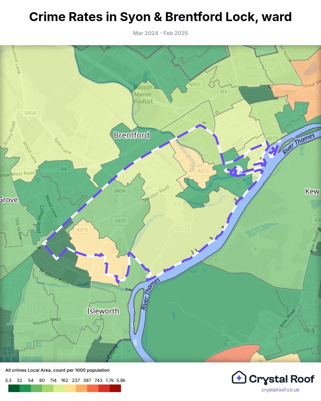 Syon & Brentford Lock, (ward) includes areas with the following crime ratings (see map):
