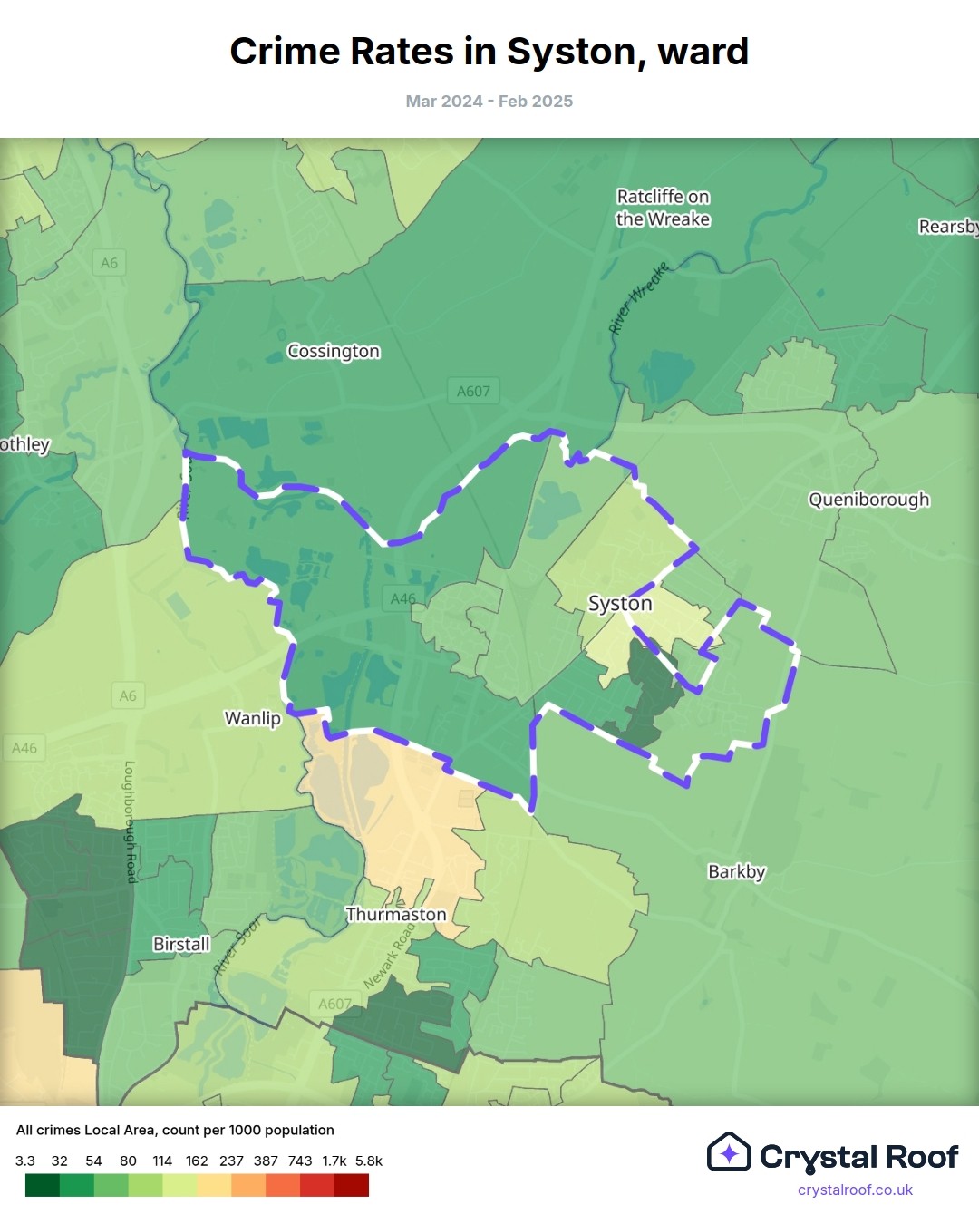Syston, (ward) includes areas with the following crime ratings (see map):