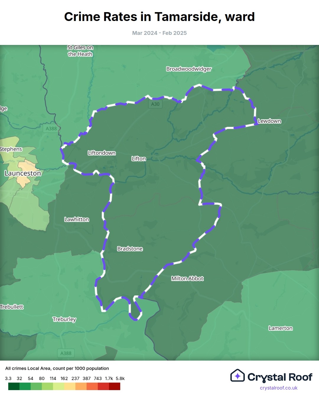 Tamarside, (ward) includes areas with the following crime ratings (see map):