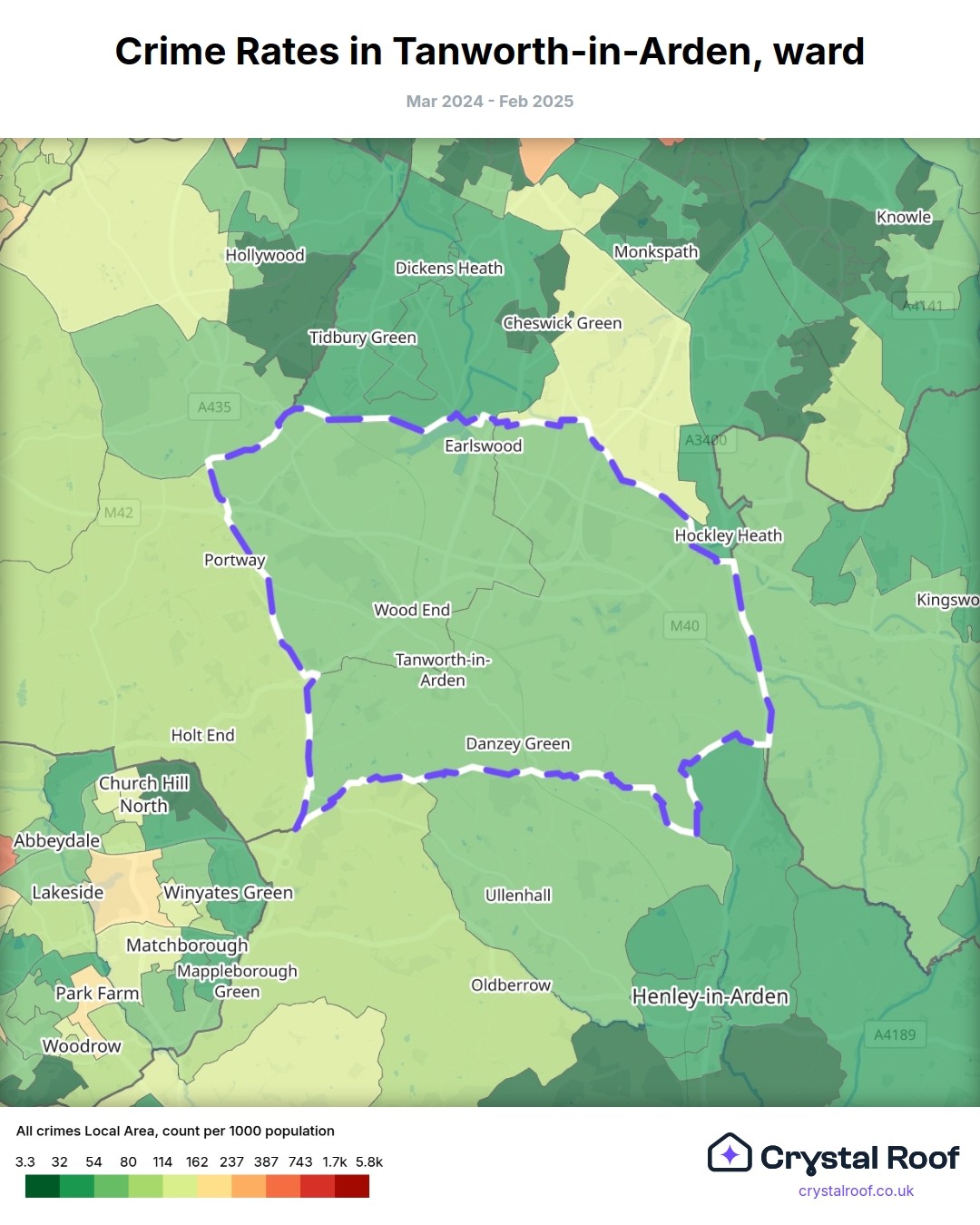 Tanworth-in-Arden, (ward) includes areas with the following crime ratings (see map):
