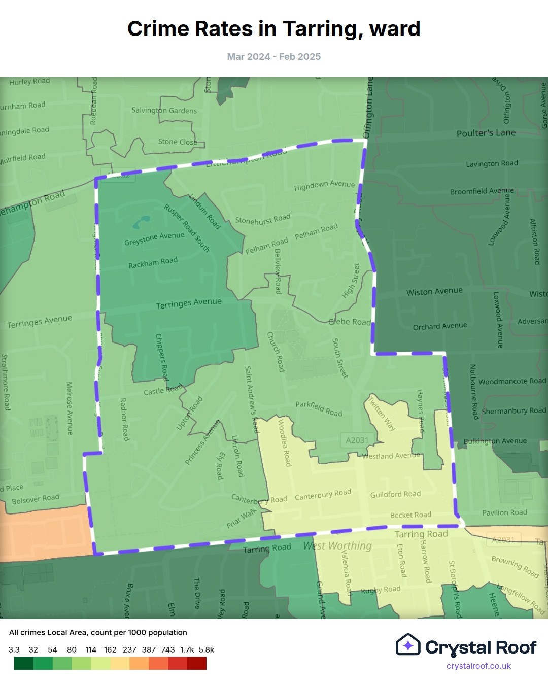 Tarring, (ward) includes areas with the following crime ratings (see map):