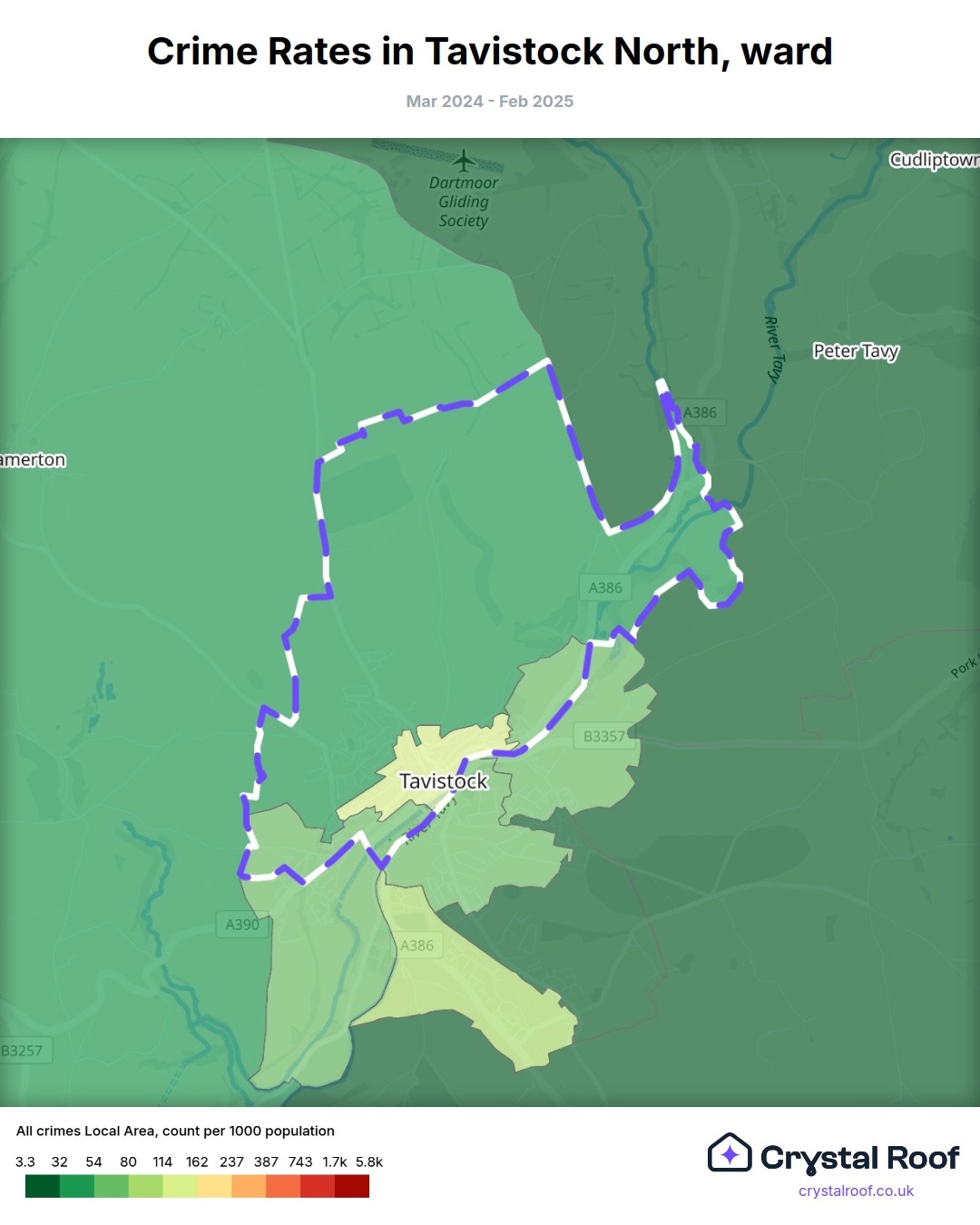 Tavistock North, (ward) includes areas with the following crime ratings (see map):