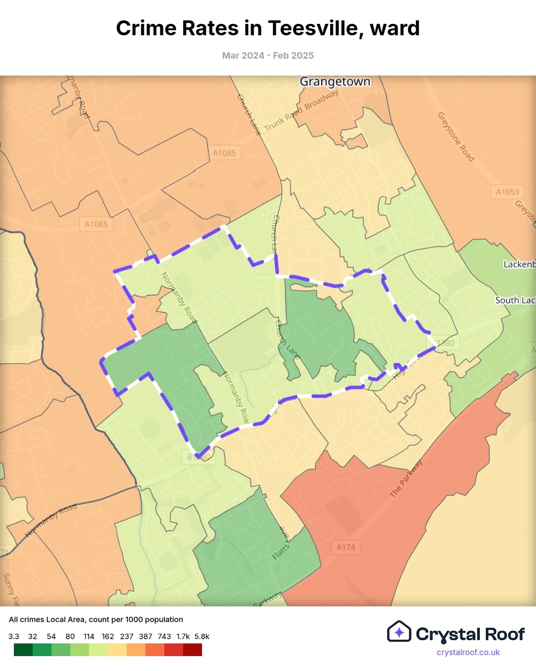 Teesville, (ward) includes areas with the following crime ratings (see map):
