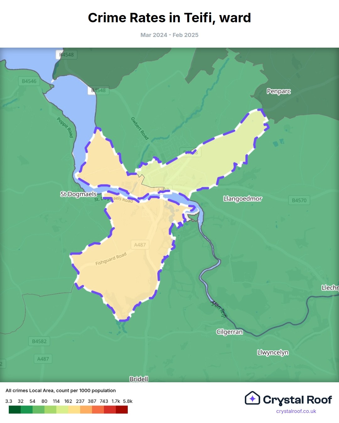 Teifi, (ward) includes areas with the following crime ratings (see map):