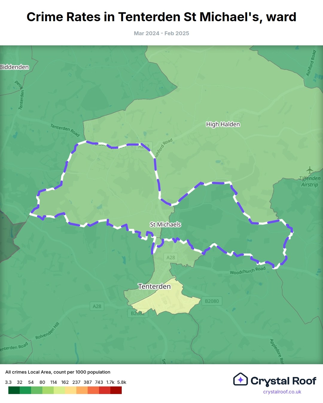 Tenterden St Michael's, (ward) includes areas with the following crime ratings (see map):