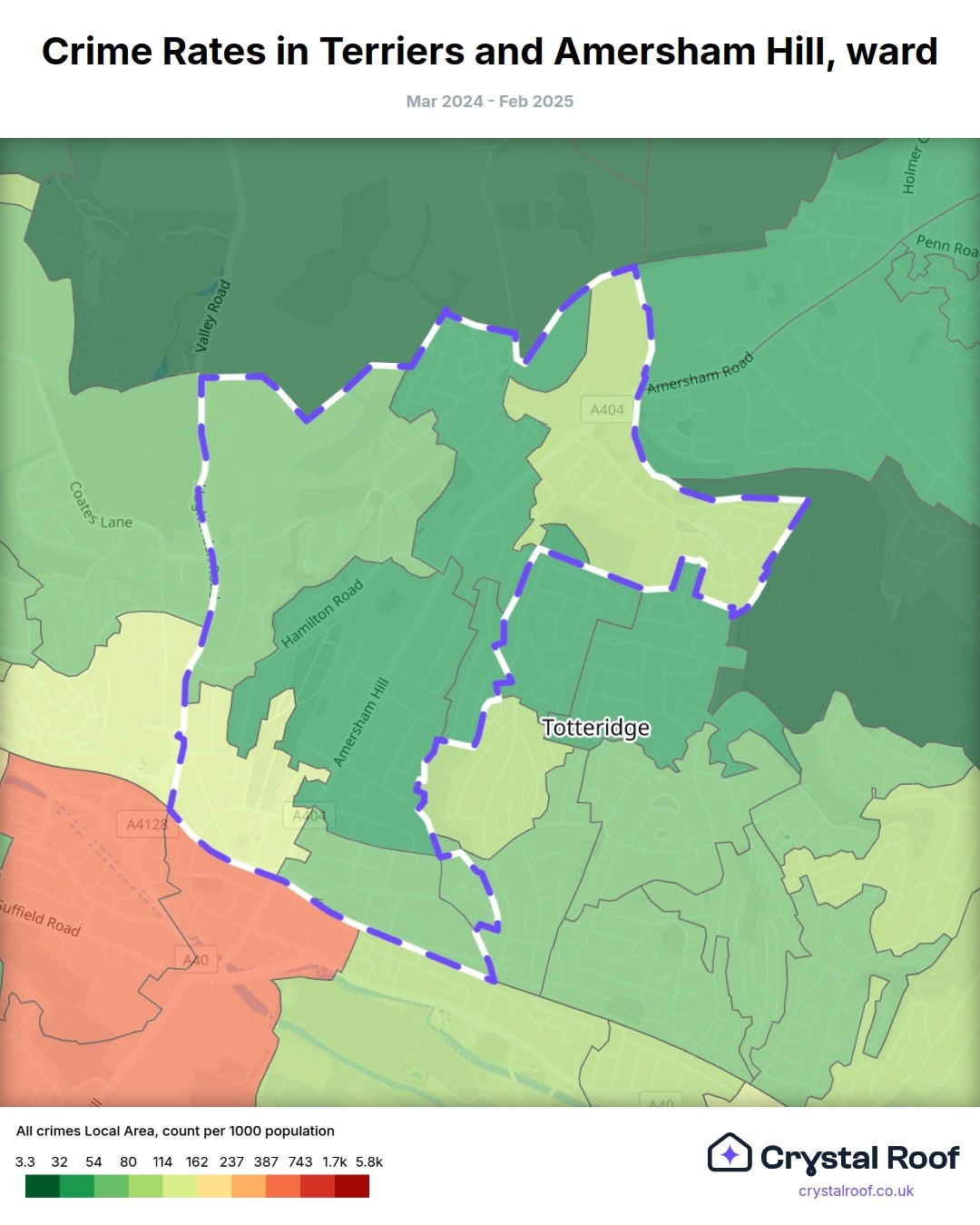 Terriers & Amersham Hill, (ward) includes areas with the following crime ratings (see map):