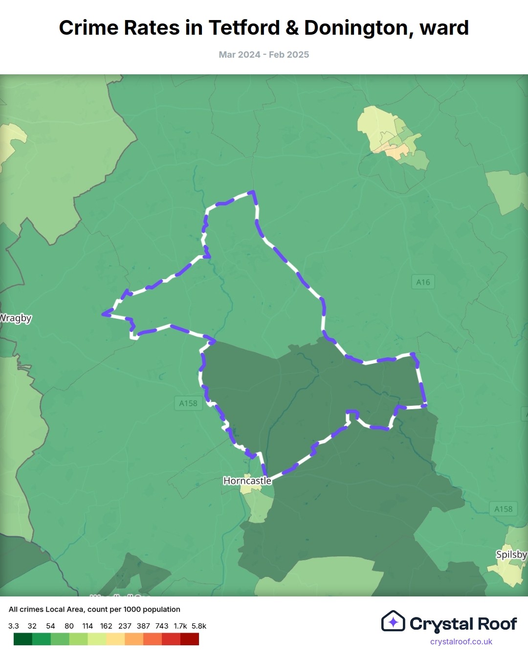 Tetford & Donington, (ward) includes areas with the following crime ratings (see map):