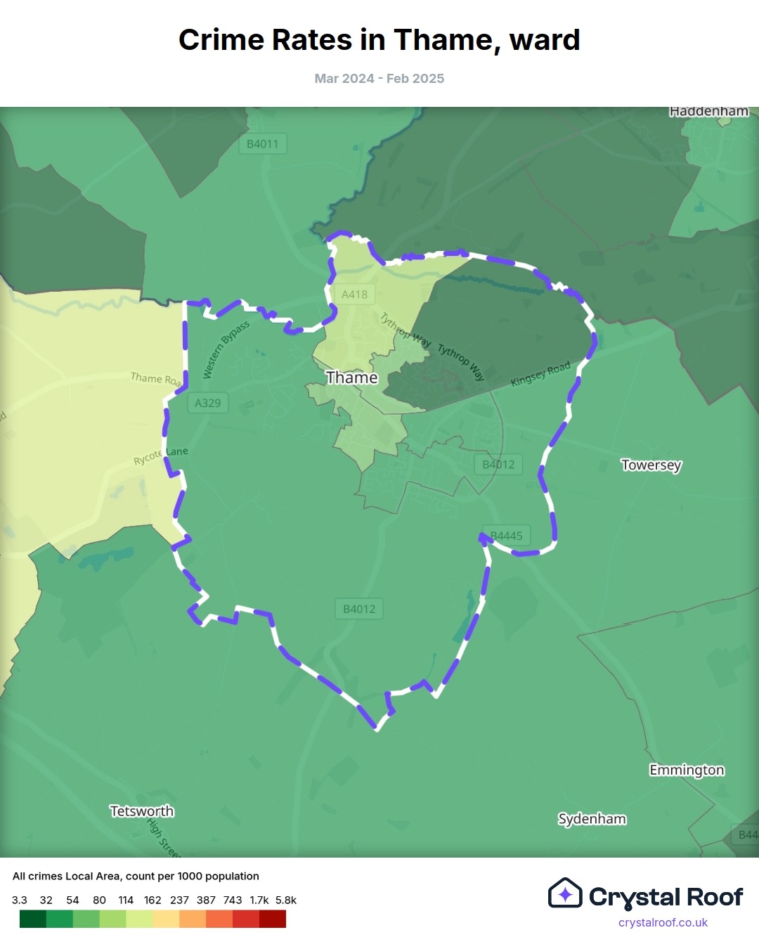Thame, (ward) includes areas with the following crime ratings (see map):
