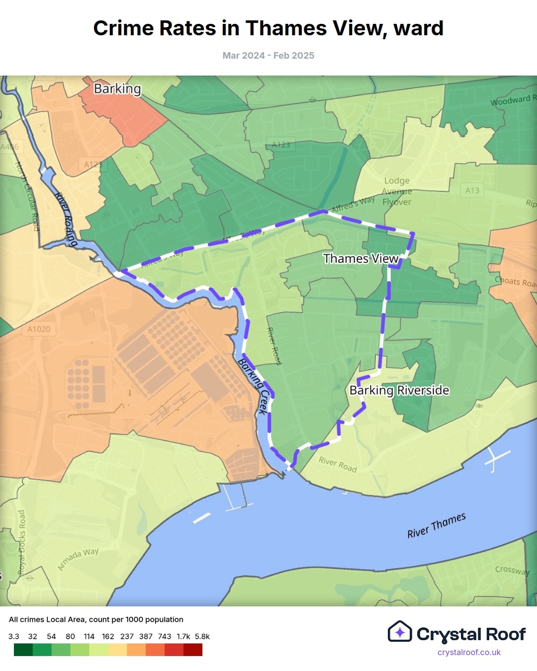 Thames View, (ward) includes areas with the following crime ratings (see map):