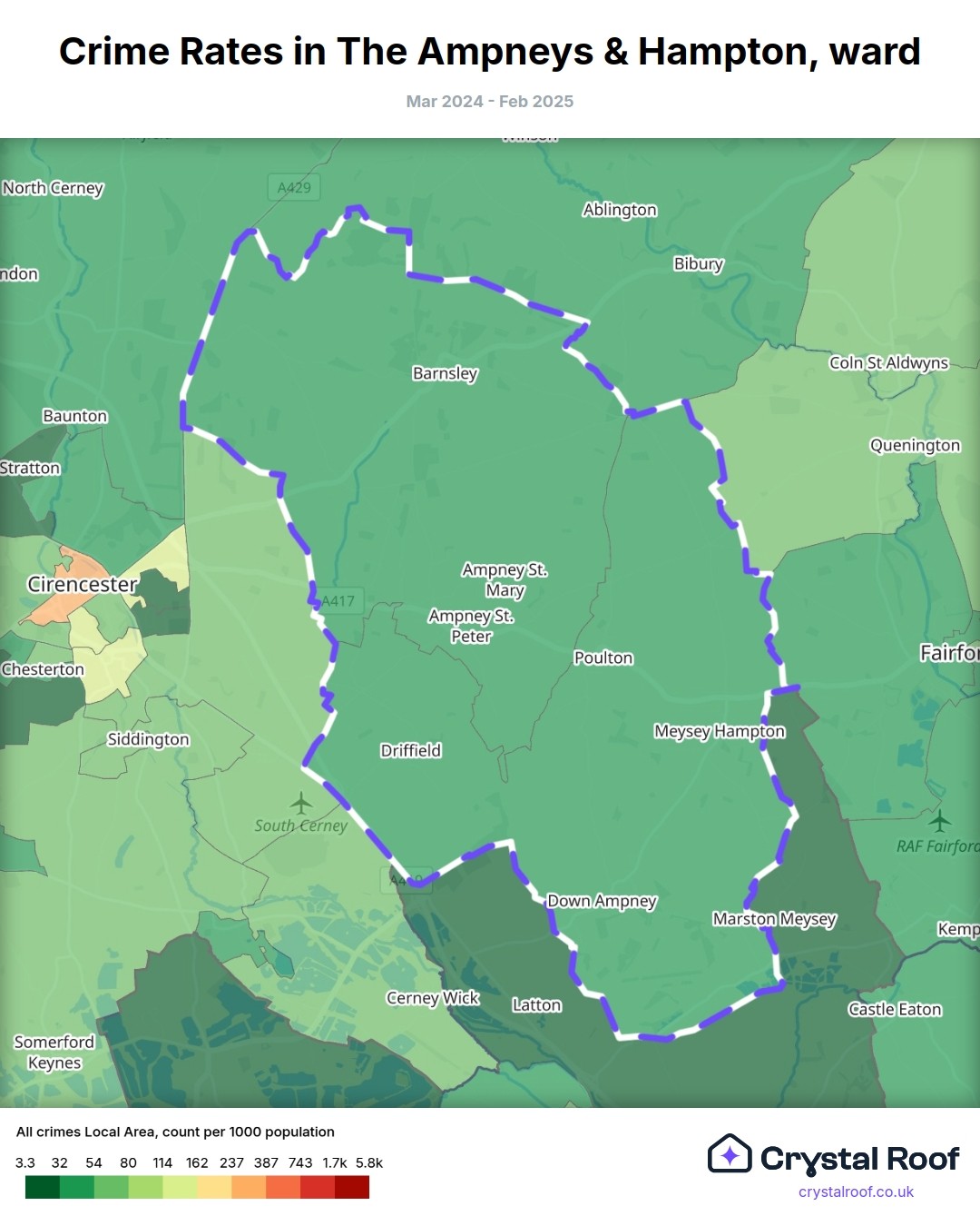The Ampneys & Hampton, (ward) includes areas with the following crime ratings (see map):