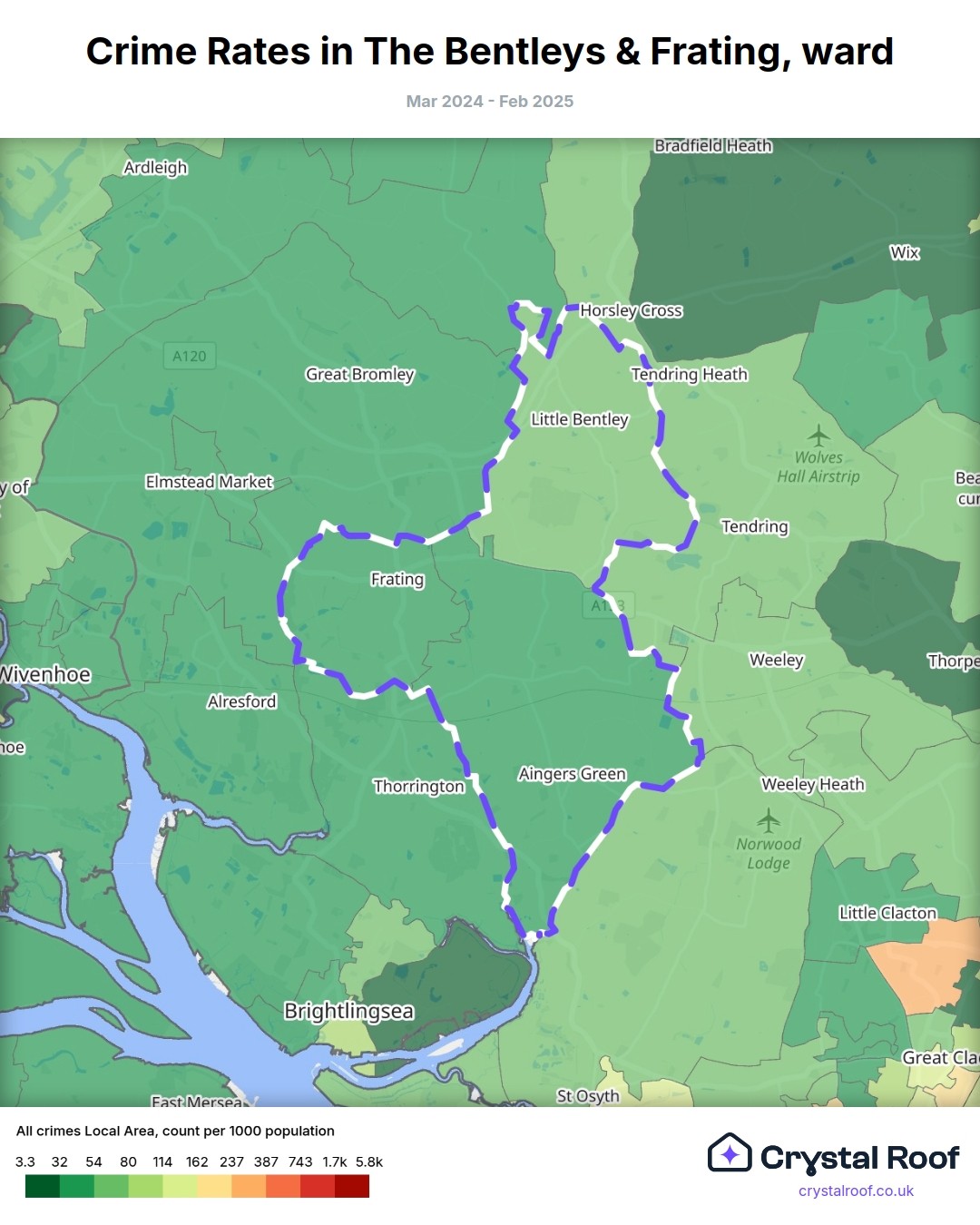The Bentleys & Frating, (ward) includes areas with the following crime ratings (see map):