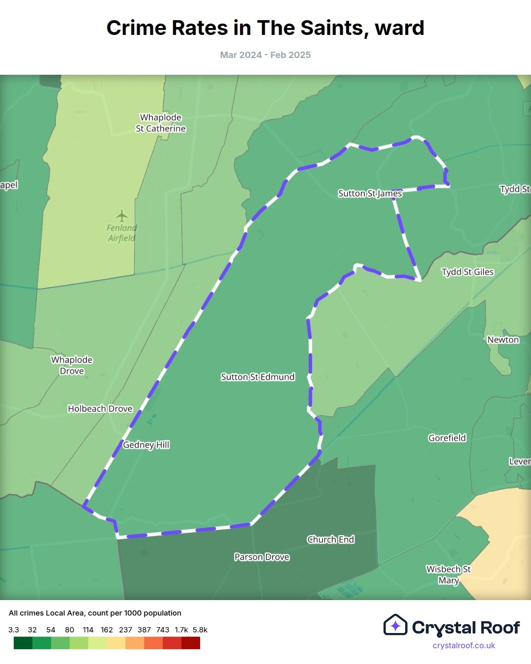The Saints, (ward) includes areas with the following crime ratings (see map):