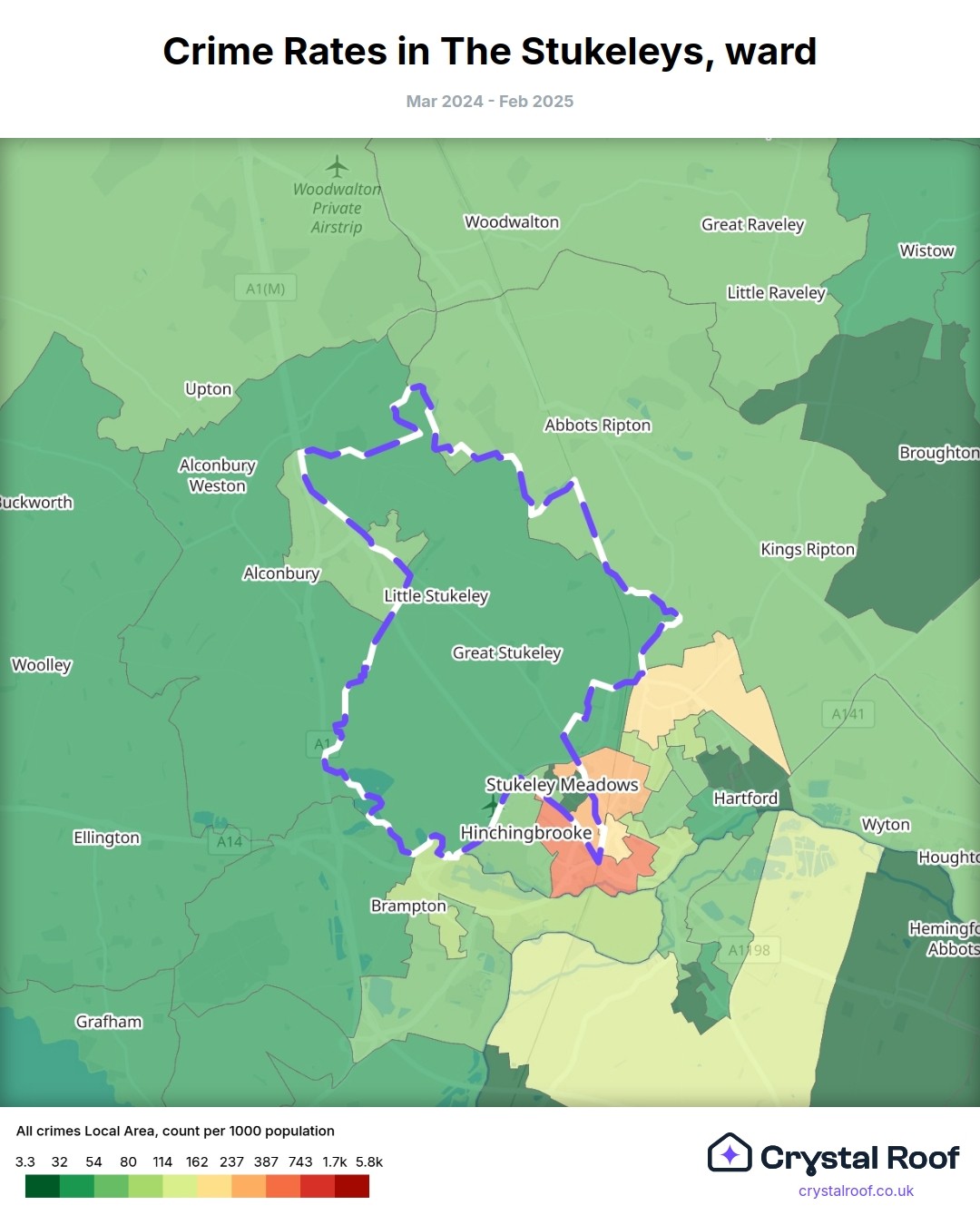 The Stukeleys, (ward) includes areas with the following crime ratings (see map):