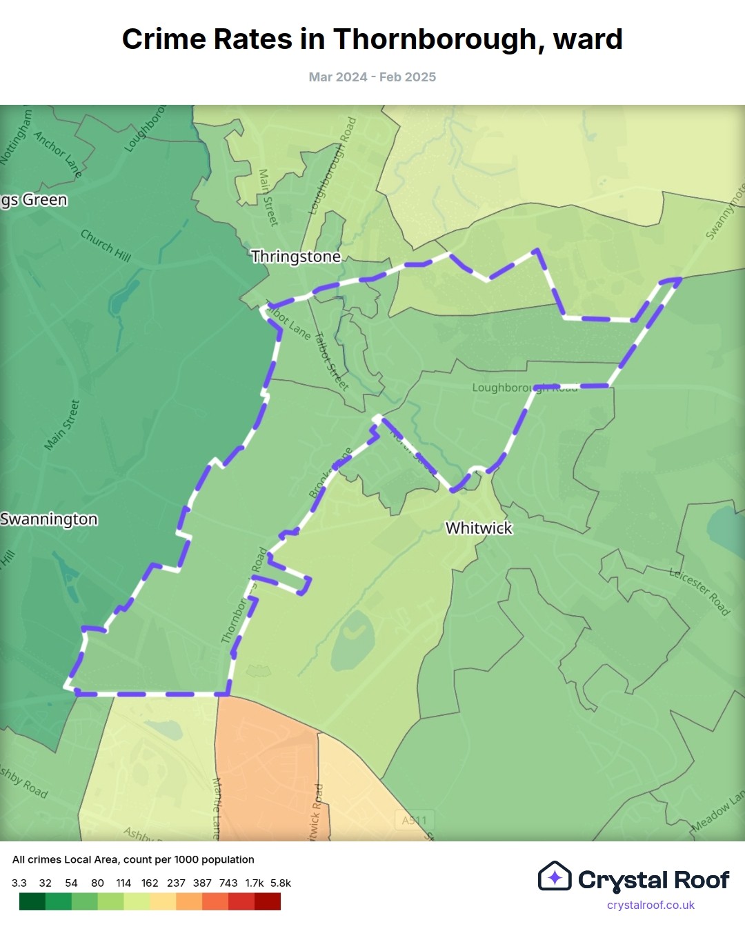 Thornborough, (ward) includes areas with the following crime ratings (see map):