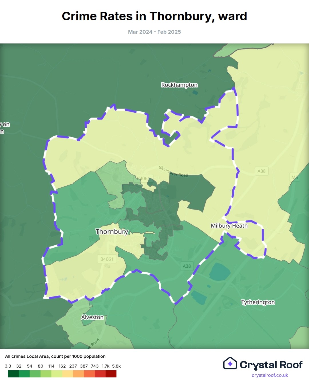 Thornbury, (ward) includes areas with the following crime ratings (see map):