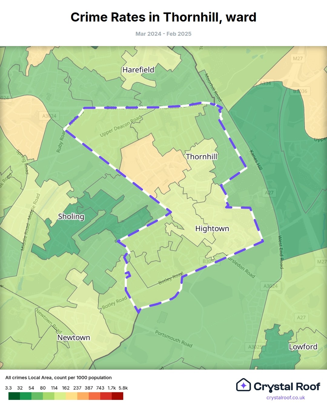 Thornhill, (ward) includes areas with the following crime ratings (see map):