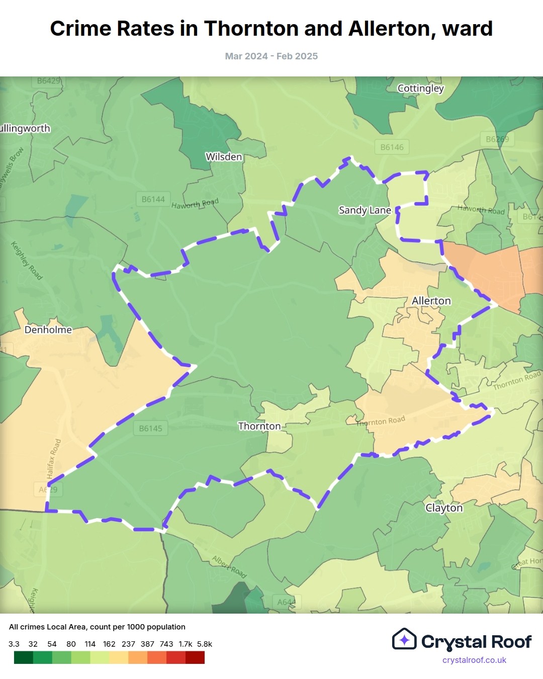 Thornton and Allerton, (ward) includes areas with the following crime ratings (see map):