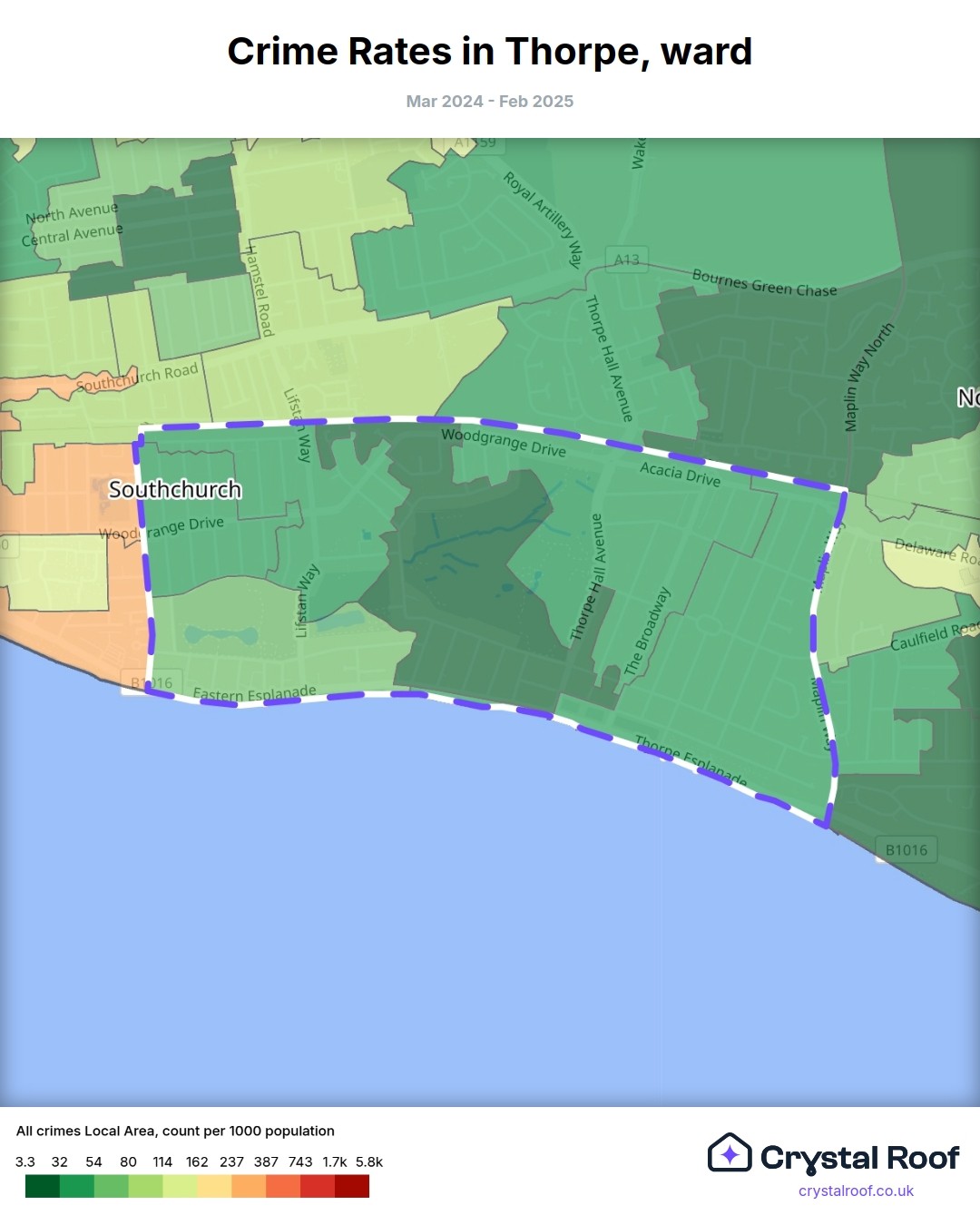 Thorpe, (ward) includes areas with the following crime ratings (see map):