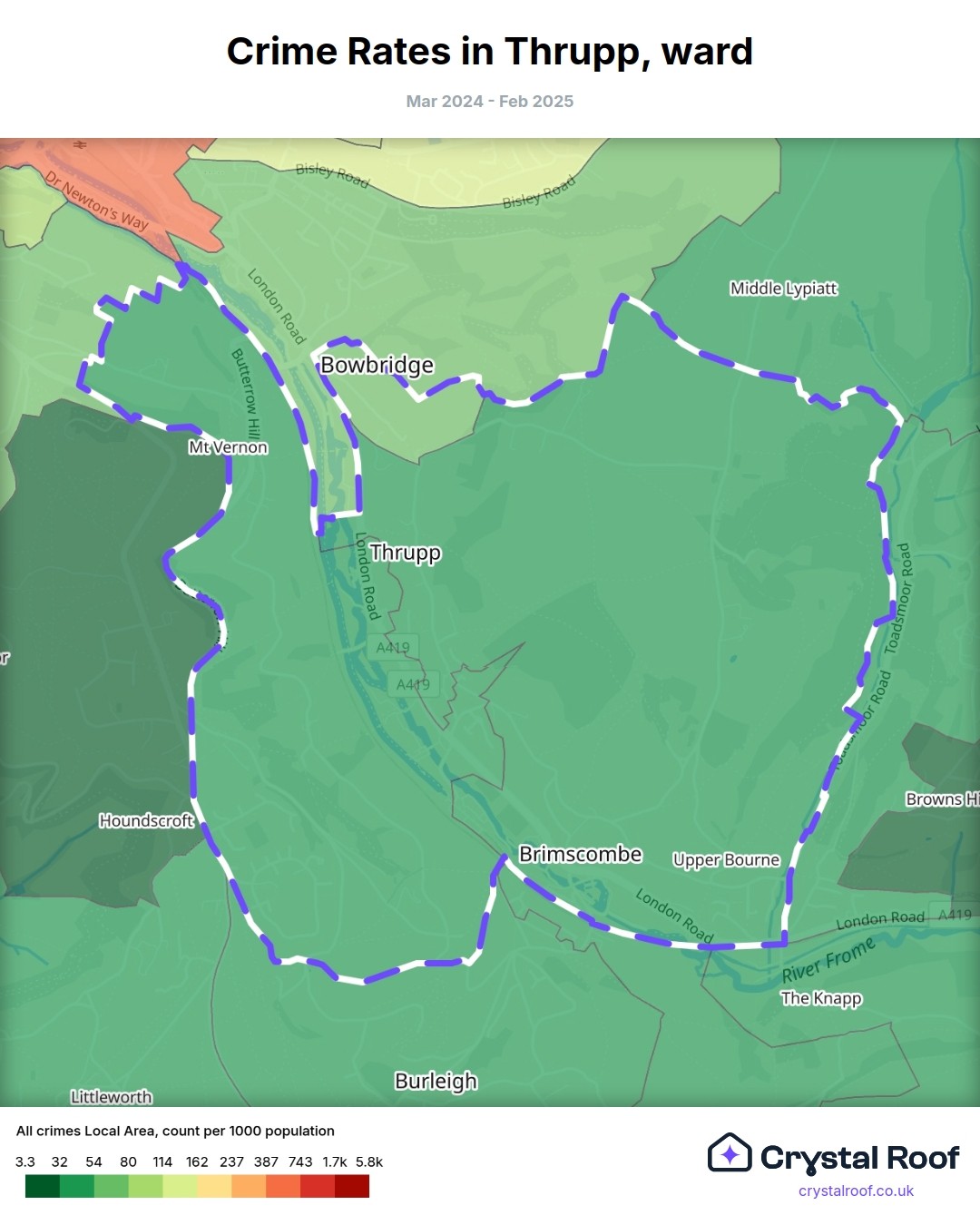Thrupp, (ward) includes areas with the following crime ratings (see map):