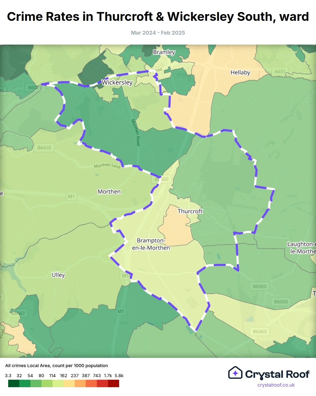 Thurcroft & Wickersley South, (ward) includes areas with the following crime ratings (see map):