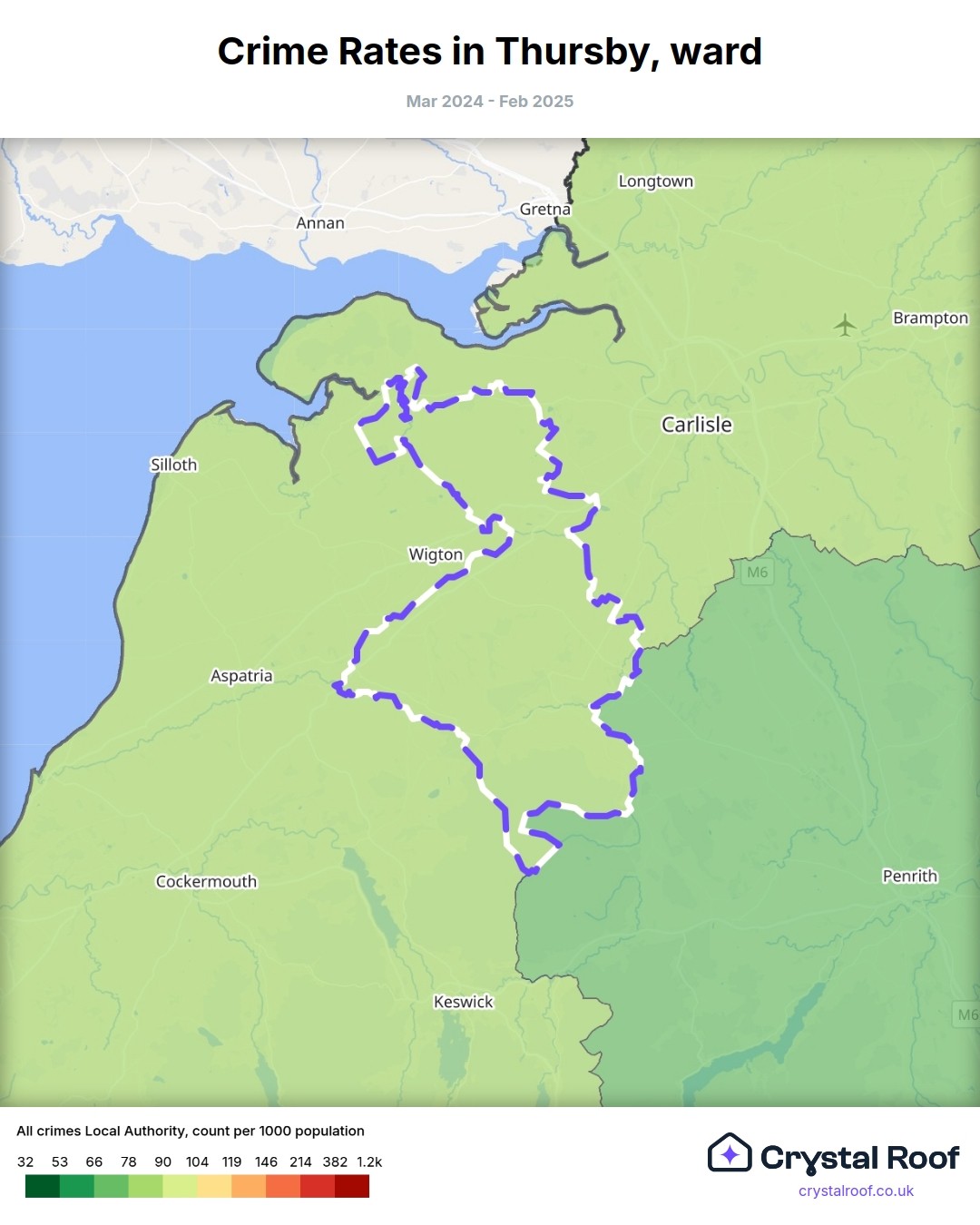Thursby, (ward) includes areas with the following crime ratings (see map):