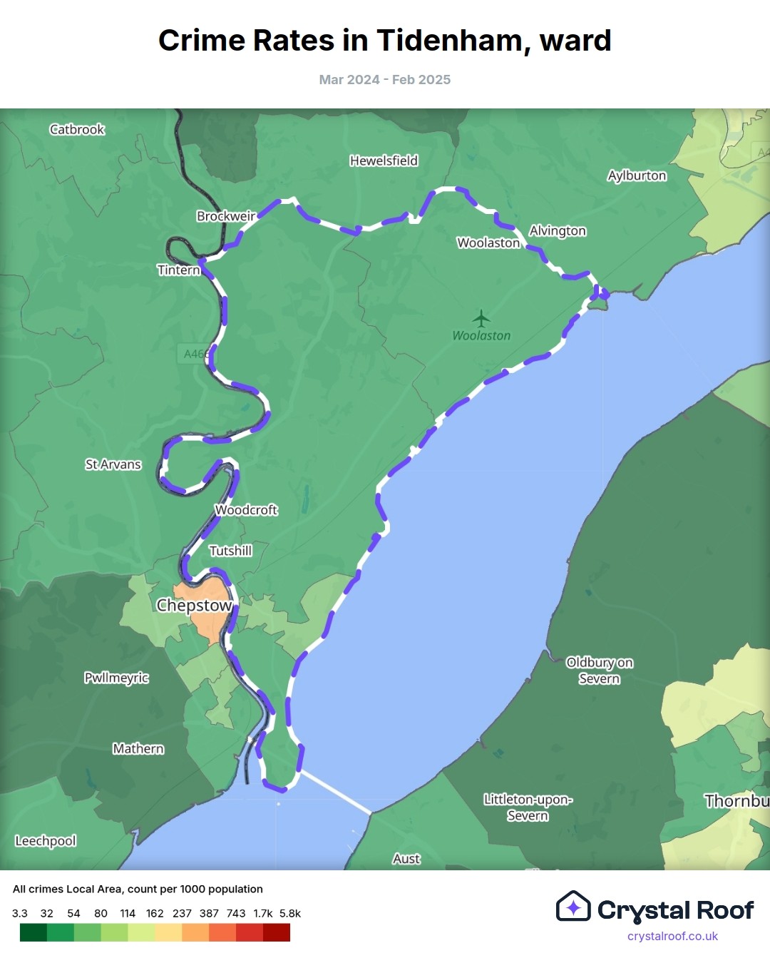 Tidenham, (ward) includes areas with the following crime ratings (see map):