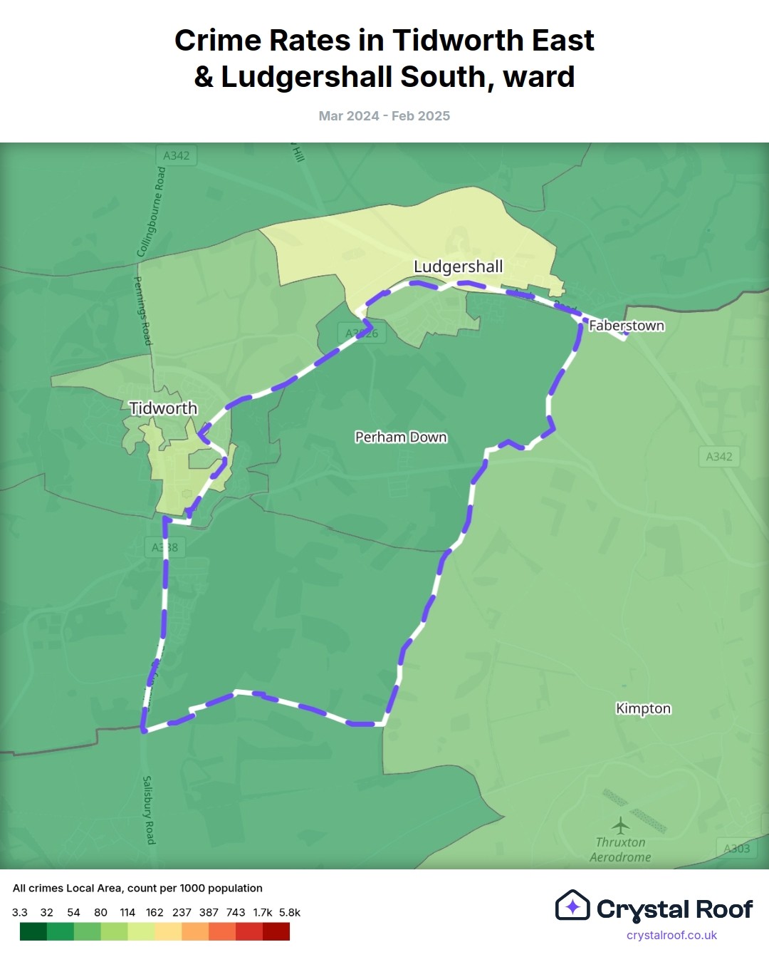 Tidworth East & Ludgershall South, (ward) includes areas with the following crime ratings (see map):