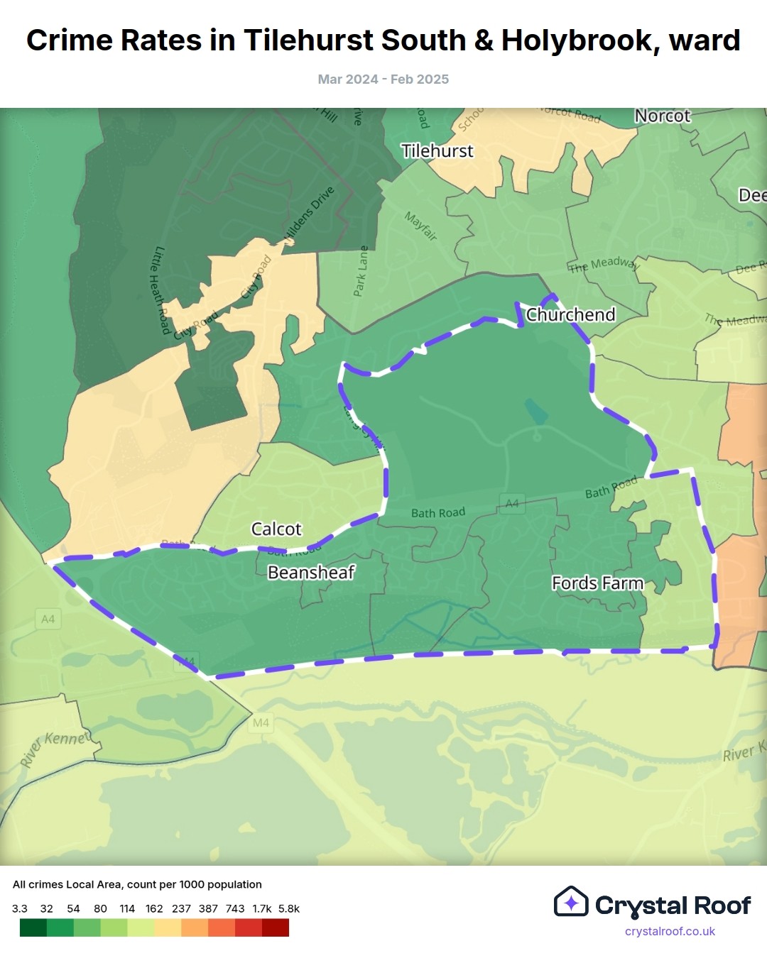 Tilehurst South & Holybrook, (ward) includes areas with the following crime ratings (see map):