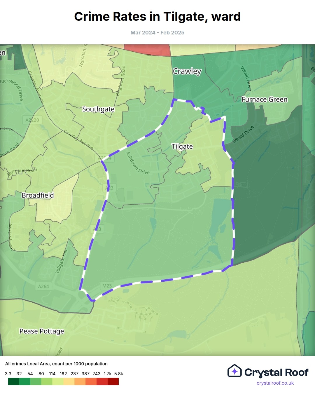 Tilgate, (ward) includes areas with the following crime ratings (see map):