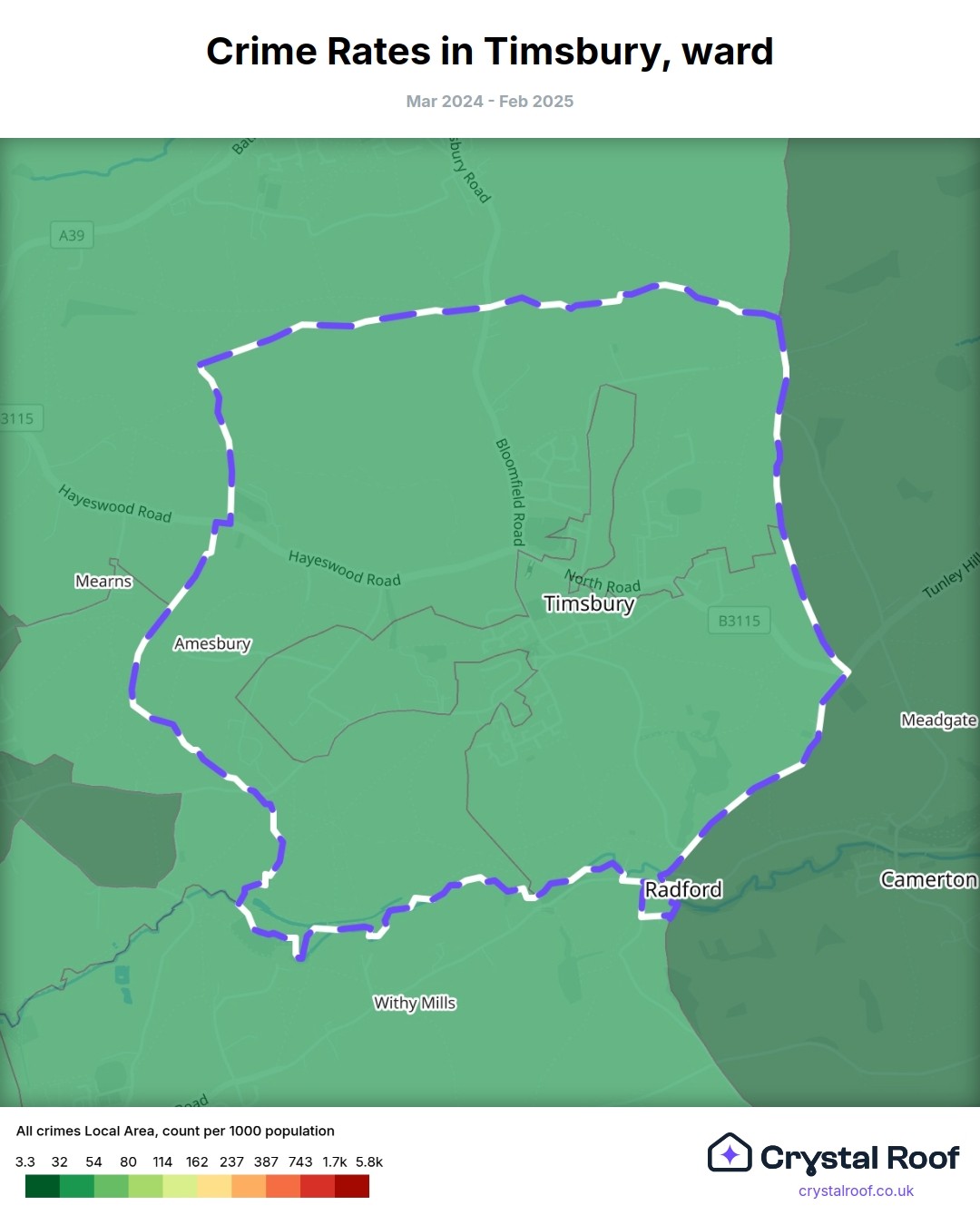 Timsbury, (ward) includes areas with the following crime ratings (see map):