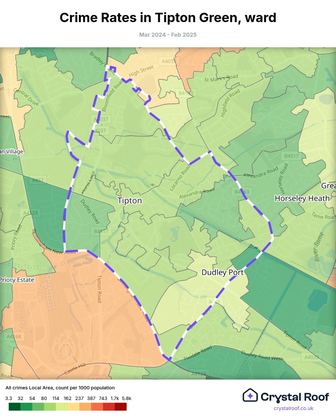 Tipton Green, (ward) includes areas with the following crime ratings (see map):