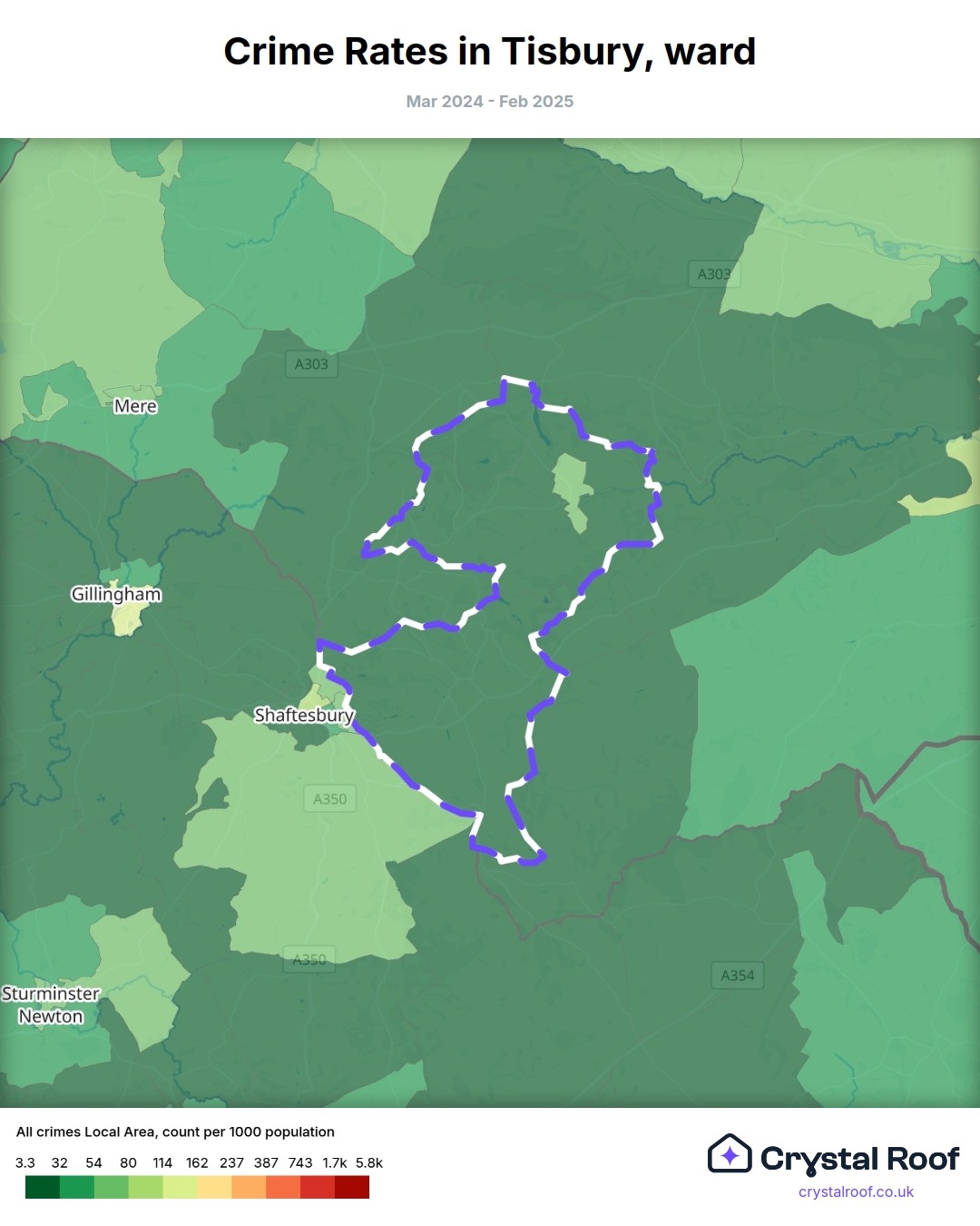 Tisbury, (ward) includes areas with the following crime ratings (see map):
