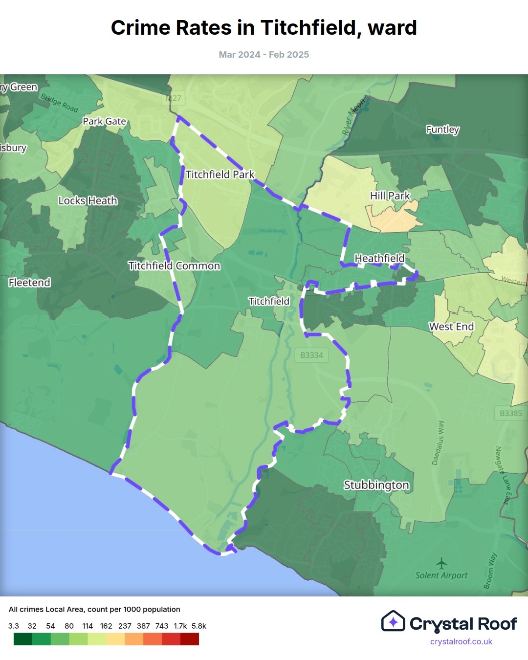 Titchfield, (ward) includes areas with the following crime ratings (see map):