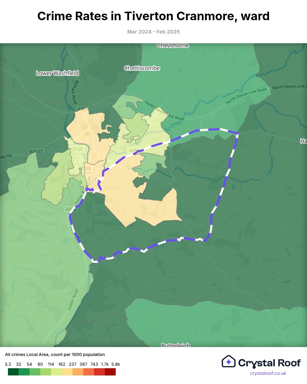 Tiverton Cranmore, (ward) includes areas with the following crime ratings (see map):
