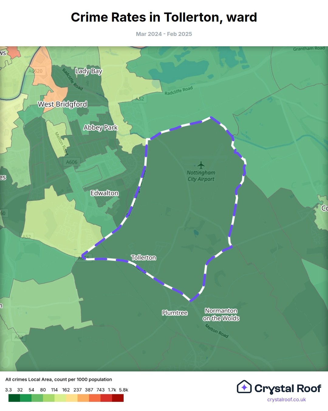 Tollerton, (ward) includes areas with the following crime ratings (see map):