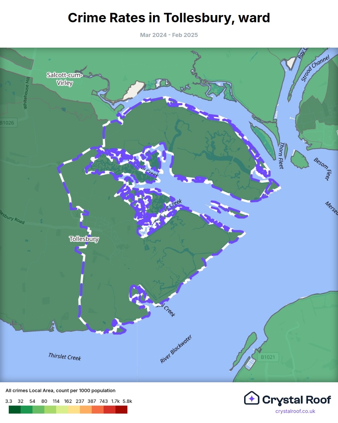 Tollesbury, (ward) includes areas with the following crime ratings (see map):