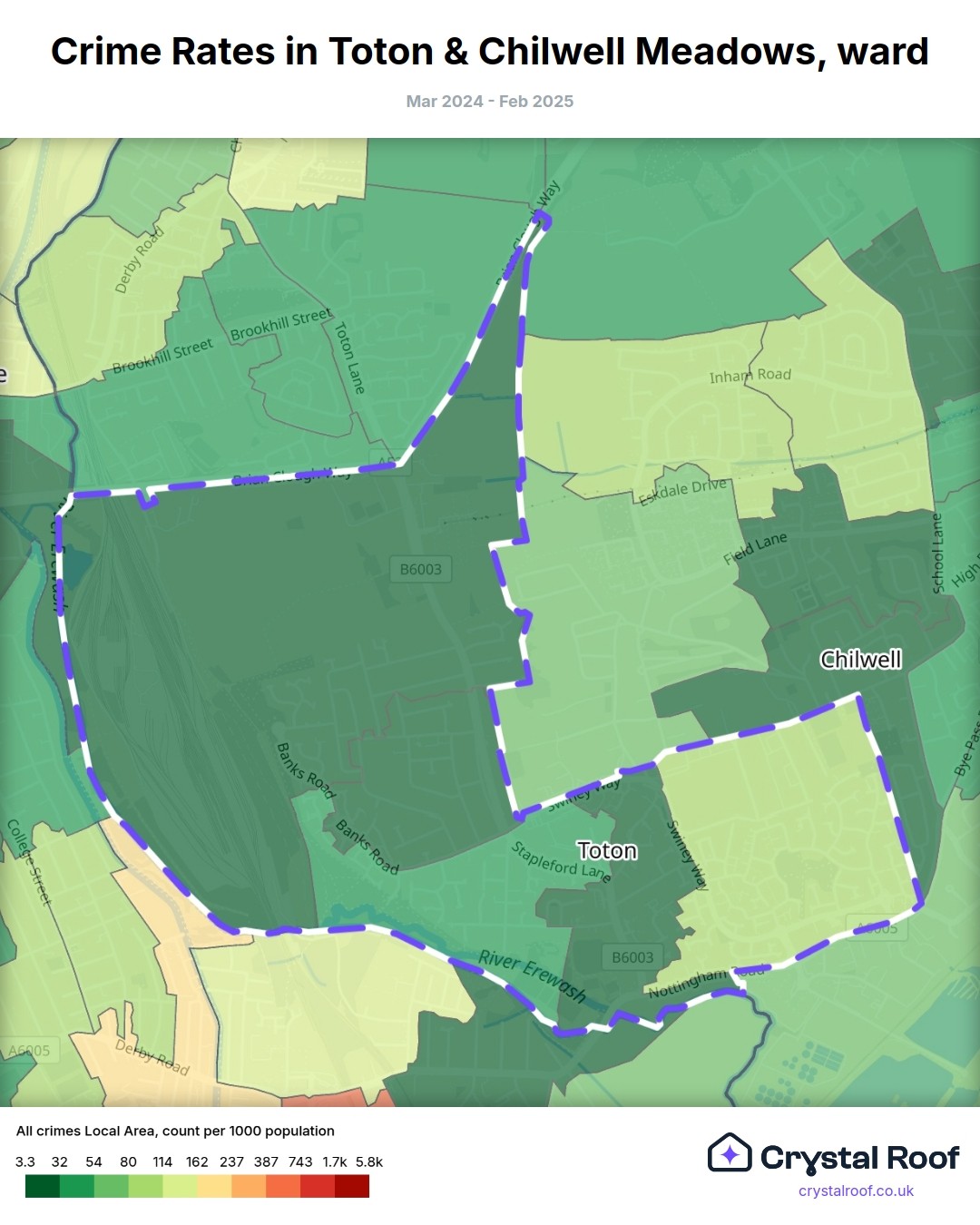 Toton & Chilwell Meadows, (ward) includes areas with the following crime ratings (see map):