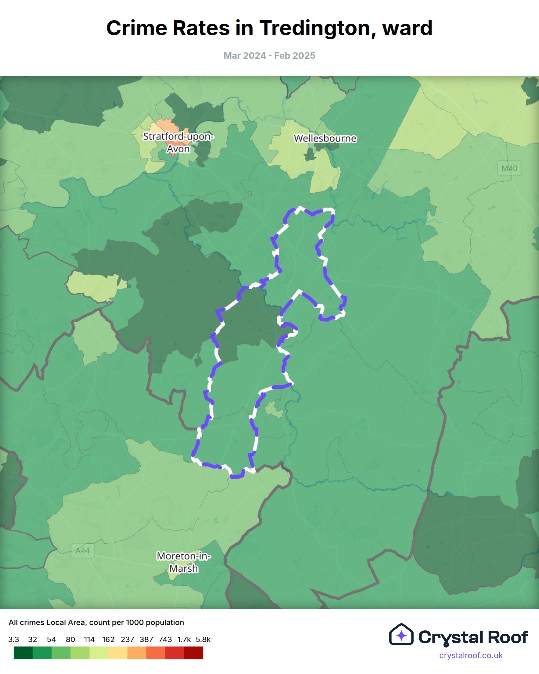 Tredington, (ward) includes areas with the following crime ratings (see map):