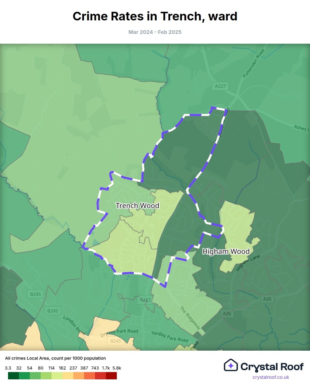 Trench, (ward) includes areas with the following crime ratings (see map):