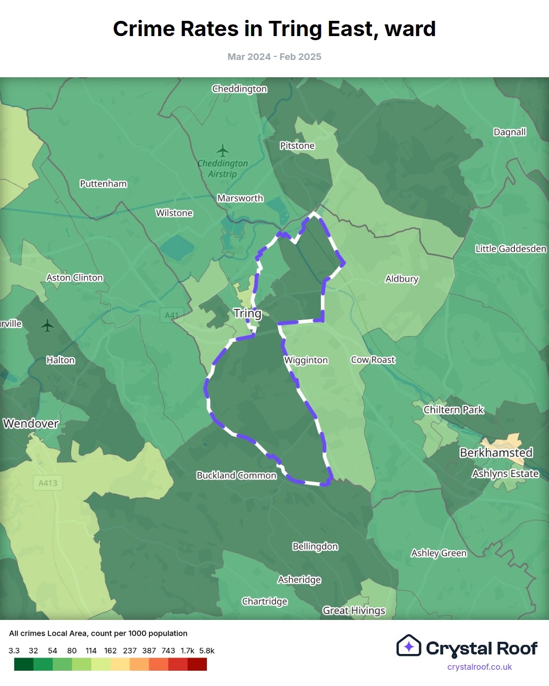 Tring East, (ward) includes areas with the following crime ratings (see map):
