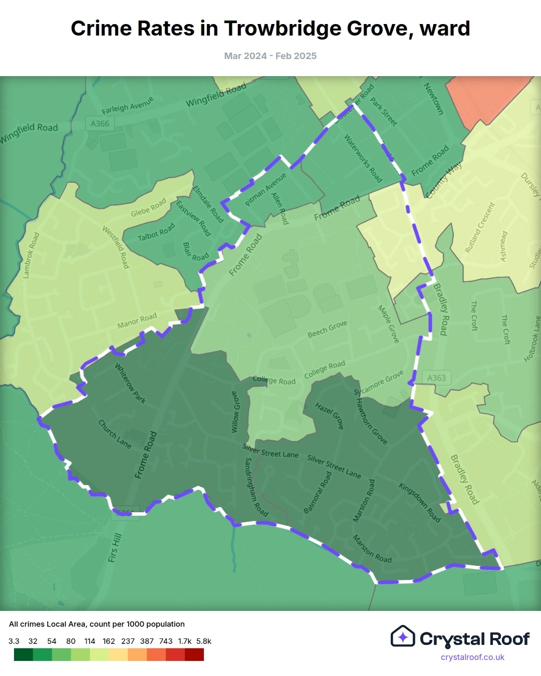 Trowbridge Grove, (ward) includes areas with the following crime ratings (see map):