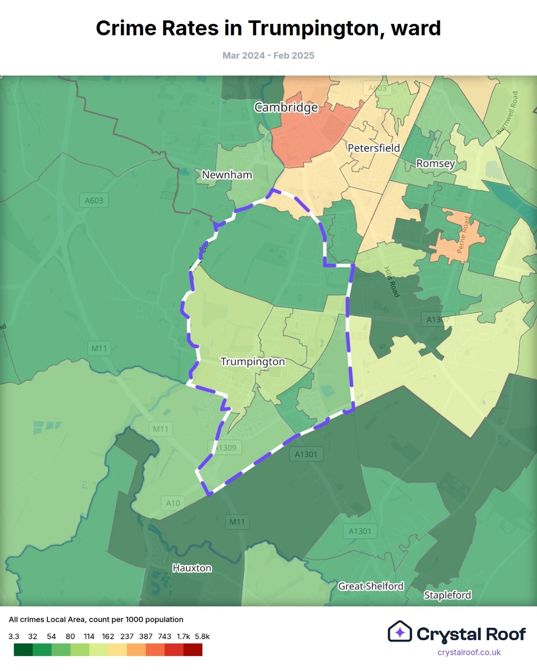 Trumpington, (ward) includes areas with the following crime ratings (see map):